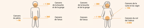 Ces virus peuvent être responsables d’infections graves, comme le cancer du col de l’utérus, du pénis, de l’anus, de la vulve ou encore de la gorge. Habituellement asymptomatiques, on recense quotidiennement 17 nouveaux cas. Parmi eux, on dénombre plus de femmes que d’hommes : deux tiers contre un tiers. Pour plus d’informations, rendez-vous sur Papillomavirus.fr.