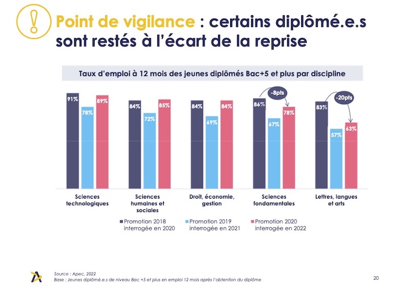 - Après deux années de crise sanitaire, les Bac+5 (et plus) accèdent à nouveau à l’emploi. Mais attention, les salaires à l’entrée continuent de baisser.