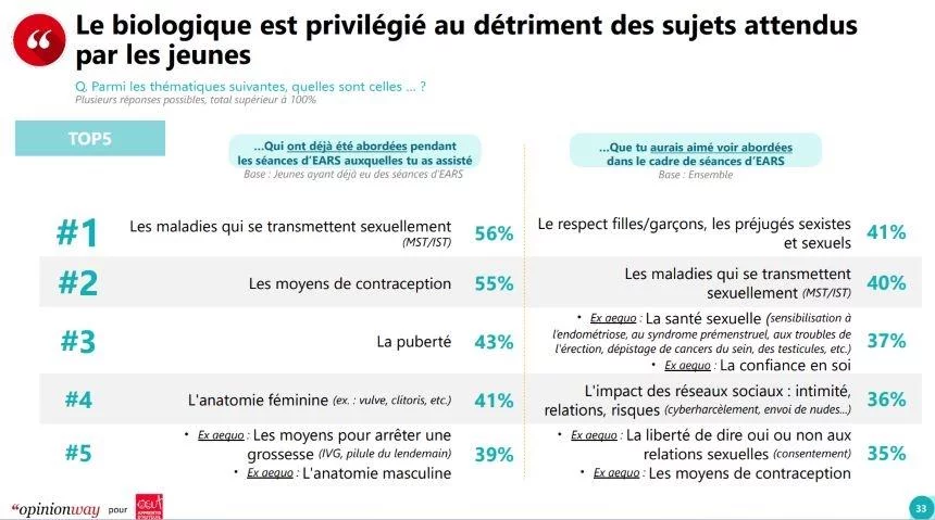 - Le 4ᵉ baromètre de l’éducation des jeunes pointe l’absence de cours d’éducation sexuelle à l’école et constate une exposition précoce à la pornographie.