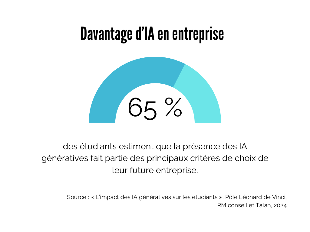 65% des étudiants estiment que la présence des IA génératives fait partie des principaux critères de choix de leur future entreprise.