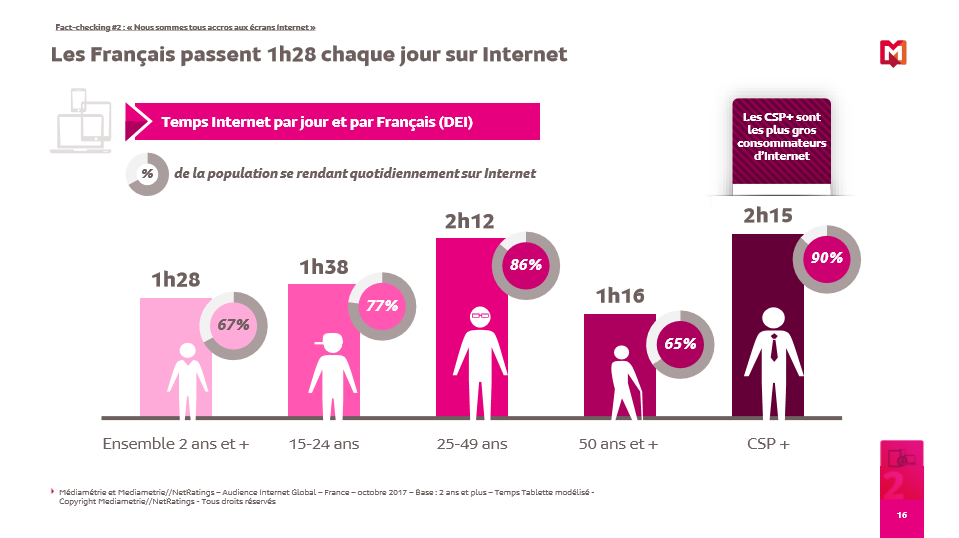 Lutter contre l’addiction à la cyber-dépendance, voilà une des raisons affichées de la journée mondiale sans Facebook qui a lieu chaque année le 28 février depuis 5 ans. Le temps passé sur Internet ne cesse d’augmenter. Aujourd’hui, tout âge confondu, d’après l’étude Médiamétrie « L’année Internet 2017 », nous passons en moyenne 1h28 par jour sur Internet. Le smartphone est devenu le 1er écran pour se connecter au quotidien, devant l’ordinateur. Les 15-24 ans y passent 65% de leur temps de connexion.
