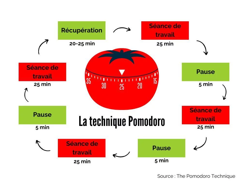 Enfin, ce n’est pas parce que la bibliothèque universitaire ouvre de 8h à 22h que vos horaires de travail doivent être similaires. On dispose tous d'un moment dans la journée où l’on se montre plus efficace. Que ce soit le matin ou en fin de journée, peu importe, car se surcharger aveuglément ne sera pas favorable à long terme. Envisagez plutôt vos révisions comme un marathon… Calez alors vos tâches en fonction pour gagner en productivité. Autre astuce pour toutes les personnes dont la capacité de concentration s'apparente à celle d’un poisson rouge : fixez-vous des plages de travail (dix, vingt minutes, une heure…) durant lesquelles vous devrez être à fond. La technique Pomodoro ou technique de la tomate, qui se penche sur la bonne gestion du temps, préconise de travailler pendant 25 minutes, puis de faire une courte pause de cinq minutes. Et ce n'est qu'au quatrième cycle de 25 minutes que vous vous octroyez une pause un peu plus longue (20 à 25 minutes environ). Développée dans les années 80, cette méthode repose sur un postulat : les pauses favoriseraient l’agilité intellectuelle. Les moments « off » servant à « offrir » du repos, ou des « récompenses ». Sortir prendre l’air, consultation de vidéos Youtube ou Tik Tok, pause goûter… Attention, il ne s'agit pas pour autant de se laisser distraire trop longtemps au point de zapper votre travail, mais de s’accorder du temps pour souffler un peu avant de se remettre dans le bain. Car, non, le contrôle de maths n’attendra pas…