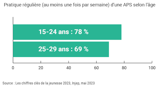 - La pratique sportive est indispensable à notre bien-être physique et mental. En 2022, 60 % des personnes de 15 ans et plus ont pratiqué une activité physique ou sportive (APS) de façon régulière (1).