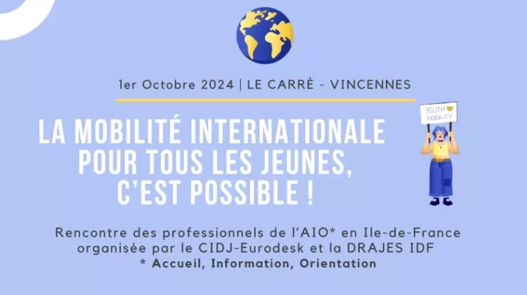 Des programmes européens et des dispositifs de mobilité à l'étranger sont adaptés et accessibles aux jeunes avec moins d’opportunités : décrochage scolaire, maladie, handicap, jeunes domiciliés en zone géographique éloignée ou quartiers prioritaires de la ville. Afin de les promouvoir, le CIDJ-Eurodesk et la DRAJES Ile-de-France proposent aux professionnels de l’AIO (Accueil Information Orientation) et de la formation une journée de rencontres avec des spécialistes et des jeunes témoins : La mobilité internationale pour tous les jeunes, c'est possible, mardi 1er octobre 2024, au Carré à Vincennes. L’inscription est gratuite mais obligatoire, sur le site du CIDJ. Les places sont limitées.