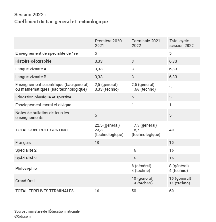 - Des coefficients sont attribués à chaque matière. Ce sont les enseignements de spécialité qui ont les coefficients les plus forts.