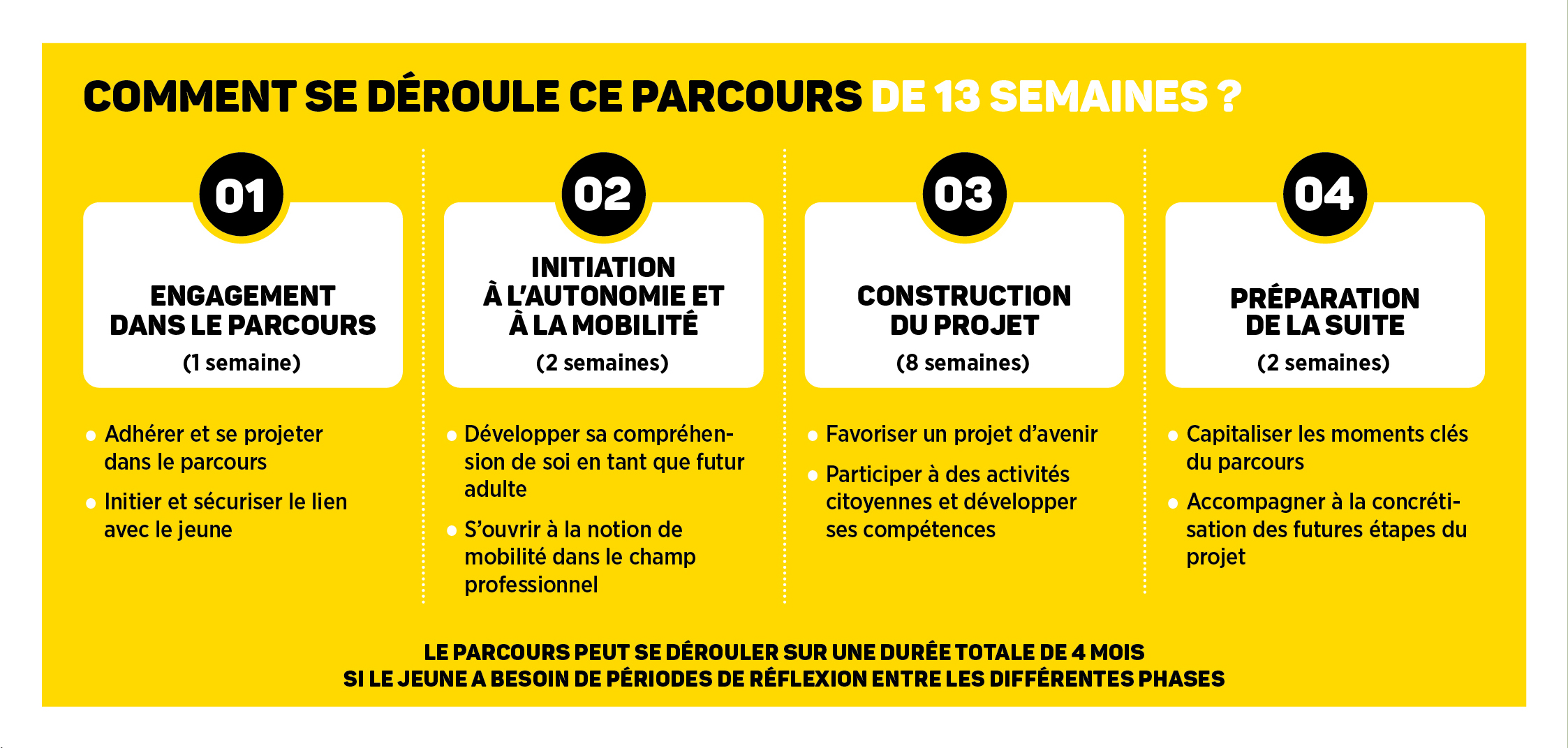 Il se déroule en 4 phases sur 13 semaines :