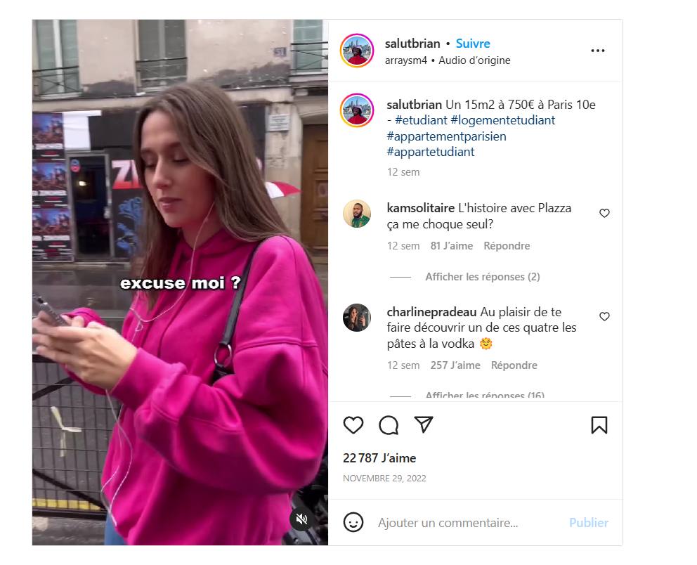 Avec ce format inspiré de créateurs de contenus américains, Brian feint d’interpeller un jeune au hasard dans la rue pour l’interroger sur le prix de son loyer. Immanquablement, il demande à visiter l’endroit et invariablement la réponse est positive. Évidemment, il y a un truc : « Tout est mis en scène, car je n’interpelle pas réellement les gens de cette façon », reconnaît le jeune homme avant de relever que « certains étudiants jouent très bien la comédie. » En revanche, assure-t-il, il découvre bien les appartements au moment où il les filme.