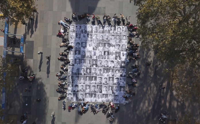 Photo vue du ciel de la place de la République à Paris prise par le drone de Cristina. ©Handicap International/JR/Mademoiselle Drone