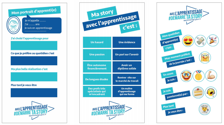 Tu es apprenti ? Un tuto et des templates sont disponibles sur www.alternance.emploi.gouv.fr pour te permettre de raconter ton parcours, ton quotidien, tes fiertés, tes craintes... et montrer à quel point le choix de l'apprentissage, loin des à priori, se révèle être une voie de passion, d'excellence et de dépassement de soi.